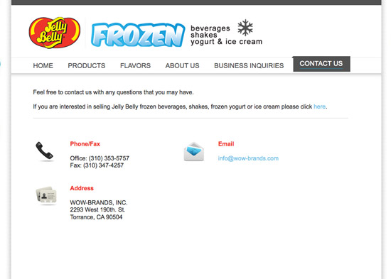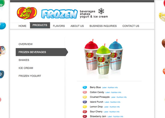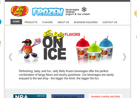 Having recently partnered with the Jelly Belly Candy Company, Wow-Brands, Inc. turned to our company to create an online sales and distribution portal that would allow their sales team to easily market and sell their new product. In conjunction with this they wanted a fun yet informative marketing site that combined the Jelly Belly branding with their own frozen treats products. The result is a colorful site detailing the various products, flavors, and partners in the project. Work included initial graphic design, layout, html programming, and CSS styling.