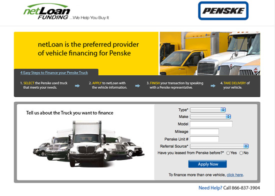 Every year Penske retires thousands of rental trucks from their fleet and sells them to interested parties. This site acts as a bridge between the Penske Used Trucks site and netLoan Funding, one of our main clients who provide online financing options for potential buyers.