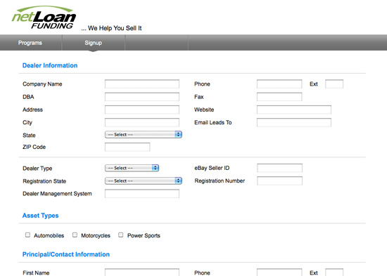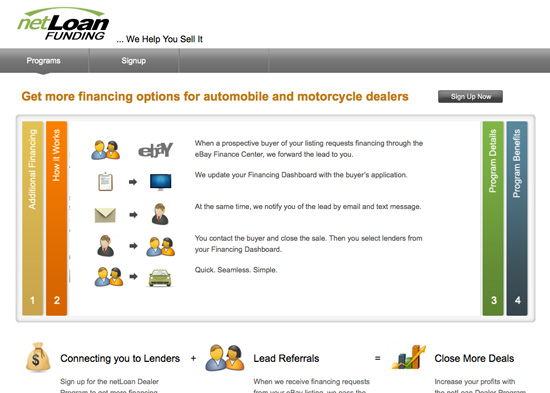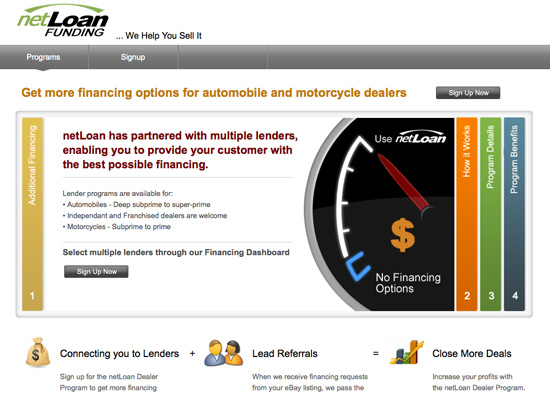 With a wide variety of on-line consumer and commercial financing options, netLoan Funding is a great resource for small businesses and independent dealers to provide financing to their customers. The netLoan Dealer Portal allows dealers to access that platform on a partnership basis.